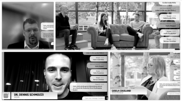 Auch dabei in Köln: Caroline Fischer, die erzählt, wie sie sich die künftige Mitarbeiterführung im elterlichen Möbelhaus vorstellt. Alexander Soller sieht die Chancen eines Handelsvertreters im E-Commerce-Bereich – die Digitalisierung macht auch vorm Möbelvertrieb nicht Halt. Hannah Brune, studierte Ernährungswissenschaftlerin, jetzt an der MöFa, will ins elterliche Küchenstudio einsteigen und findet, dass man den Kunden auch in Zukunft mit Onlineberatung mehr zu Hause abholen muss. Mehr zu Hause sein - das gilt nach ihren Vorstellungen selbst für die Mitarbeiter des Küchengeschäfts. „Homeoffice ist nicht so schwierig umzusetzen“, das habe sich in den letzten Monaten gezeigt. Luis Wannenwetsch sieht das familieneigene Möbelhaus aus Gingen an der Fils gerade wegen seiner kompakten Größe von 7.000 qm gut aufgestellt. Inga Dumath, die allein durch privates Interesse an der MöFa gelandet ist, meint: Der Arbeitsort müsse in Zukunft flexibel sein – es werde viele verschiedene Arbeitsplätze geben. Mit dieser Einstellung ist sie beim zukünftigen Arbeitgeber Designfunktion gut aufgehoben, der sich auf solche Lösungen einstellt. Carla Giesecke will ins Designbüro ihrer Tante einsteigen. Arbeit sieht sie nicht als Arbeit, sondern als Leidenschaft. Ihre Generation sei flexibel, sagt sie. „Wir wollen uns weiterentwickeln und nicht feststecken.“