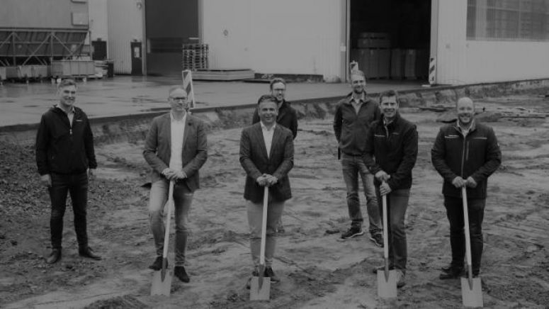 Pronorm Küchen erweitert die Produktion in Vlotho um ein vollautomatisiertes Plattenlager. Die neue Lager- und Maschinenhalle soll 2.500 qm groß werden und um den Jahreswechsel herum fertig sein. Spatenstich war am 1.7. – beim Buddeln halfen neben den beiden Geschäftsführern Thorsten Gösling und Roger Klinkenberg auch Betriebsleiter Gordon Henke, Sven Schröder (Betriebstechnik), Bürgermeister Rocco Wilken und Stefan Bäunker und Tristan Gerling vom Planungsbüro Bäunker & Cawalla.