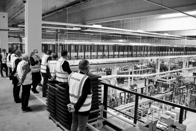Nach der Versammlung besichtigten die Teilnehmer das neue Häcker-Werk Nr. 5 von Häcker Küchen in Venne. Nach weniger als zwei Jahren Bauzeit fertigen hier aktuell rund 300 Mitarbeiter auf einer Produktionsfläche von rund 110.000 qm etwa 320 Einbauküchen am Tag.