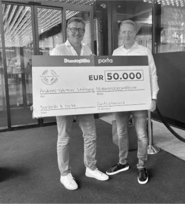 Eigentlich war es eine vorweihnachtliche Aktion, dann wurde sie bis Ende März verlängert, kürzlich war Scheck-Übergabe. Dunlopillo und Porta hatten in der Adventszeit 2021 die Aktion „Gut Schlafen für eine bessere Welt“ gestartet. Für jeden Matratzen- oder Betteneinkauf über 699 Euro in den 26 Porta-Einrichtungshäusern spendeten beide Unternehmen gemeinsam 20 Euro an die „Andreas Gärtner-Stiftung – Hilfe für Menschen mit geistiger Behinderung“ (AGS).