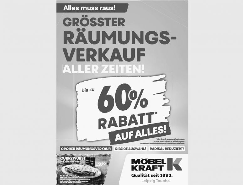 Acht Möbel-Kraft-Standorte betreibt Familie Krieger aktuell. Bei Möbel Kraft in Taucha bei Leipzig läuft allerdings seit einigen Wochen der „größte Räumungsverkauf aller Zeiten“ – kein bloßer Werbegag. 30.000 qm Kraft schließen im September tatsächlich. Und eröffnen