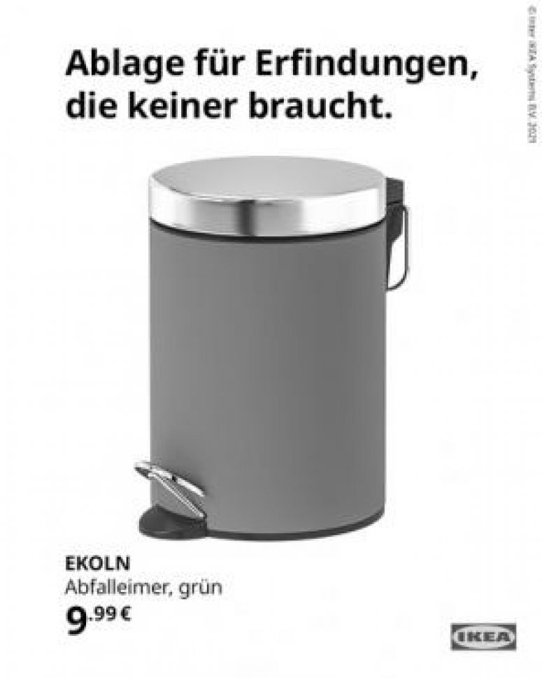Jetzt dreht Ikea den Spieß um: „Ablage für Erfindungen, die keiner braucht“, steht über einem von den Schweden in Social Media geteilten Bild. Auf dem Foto wird Ikeas Abfalleimer „Ekoln" – nein: nicht „Ekeln“ – beworben. Mit dem Zusatz: „Und das Beste: Er lässt sich sogar ganz ohne Handschuhe bedienen.“ Begeisterte Nutzer-Kommentare in Twitter oder auf Facebook zeigen, dass der Konzern für seine antisexistische Tat gefeiert wird.
