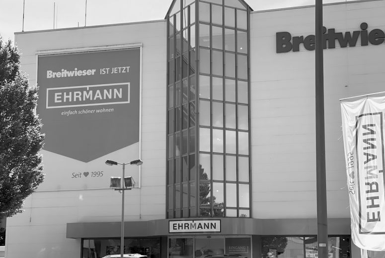 Das Haus ist bereits umgeflaggt: „Breitwieder ist jetzt Ehrmann“ steht außen dran. Die Fahnen wehen, die Mitarbeiter durften alle mitkommen ins neue Unternehmen. Andreas Ehrmann von Möbel Ehrmann betont zudem: „Wir sind ja auch bei allen offenen Aufträgen der Kunden, bei allen Forderungen der Industrie eingestiegen. Wir haben alles übernommen. Der Geschäftsbetrieb läuft nun geregelt über uns weiter.“