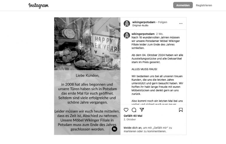 Aufgeben muss die Filiale Potsdam des 1997 gegründeten Möbelhauses „Möbel Wikinger“, das ursprünglich mal Claus Ruhe Madsen gegründet hatte. Der deutsch-dänische Unternehmer, der bei Ikea in Essen in