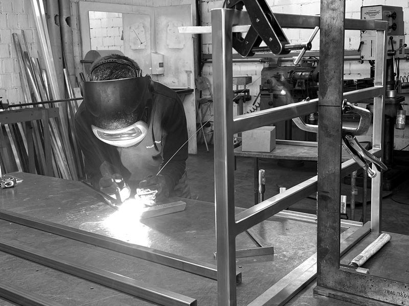 Blaue Funken sprühen in die Luft. In der hauseigenen Edelstahl-Manufaktur von Willisau sind Peter Baumgartner, Muhamed Majed und Philipp Bucher an der Arbeit. Alle Edelstahl-Gestelle für die Willisau-Tische werden hier per Hand geschliffen und verschweißt. Inhaber Patrick Brunner begrüßt seine Mitarbeiter mit Handschlag. Man kennt sich. Man duzt sich. Man schätzt sich. Gute Stimmung innerhalb der Firma sei ihm sehr wichtig, so Brunner während des Firmenrundgangs. Sagen mit Sicherheit alle Firmeneigentümer. Brunner nimmt man das auch ab. Vor allem aufgrund der Reaktionen von Mitarbeitern auf sein Erscheinen.