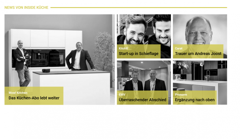 Weitere Meldungen der Woche auf INSIDE Küche: das Mini-Studio-Konzept von Küche&Co, ein Neuer im Vertrieb von Neelsen und von RMT Soft, der plötzliche Tod von Andreas Joost und Roland Brandls Kündigung in Fahrenzhausen.