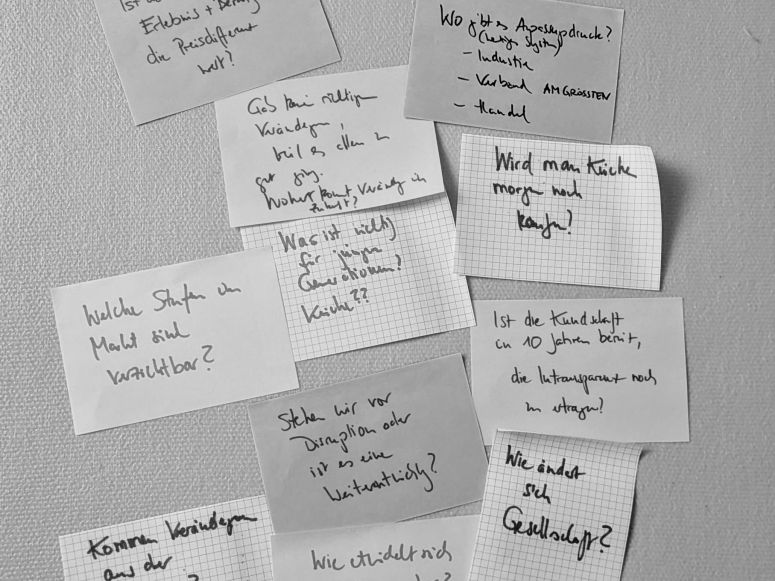 Die Runde bestand aus Leuten, die im Markt etabliert unterwegs sind, und solchen, die eher disruptive Ansätze verfolgen. Mit einer Disruption rechnen wahrscheinlich alle. Die meisten glauben aber, dass diese eher nicht aus dem Markt selbst kommen wird, sondern auf den rasanten (auch technischen) Veränderungen weltweit aufbaut und die Strukturen komplett verändert. Im Küchenmarkt selbst geht es ja selten so fix.