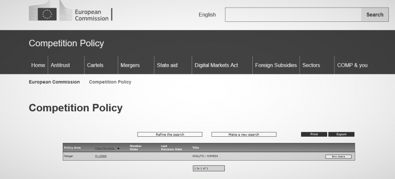 Unter der Fall-Nummer M.10969 hat die XXXLutz-Gruppe gestern „endlich“ die geplante Home24-Übernahme bei der EU-Kommission formell zur Freigabe angemeldet. Die Behörde hat in der Folge ein vertieftes Verfahren eingeleitet, wohl weil sich in der Vorprüfung schon herausgestellt hat, dass ein vereinfachtes Verfahren der Sache nicht gerecht wird. Schon seit dem letzten Herbst hat man sich in Brüssel mit dem Fall befasst. Das Vorverfahren kann nun entfallen.