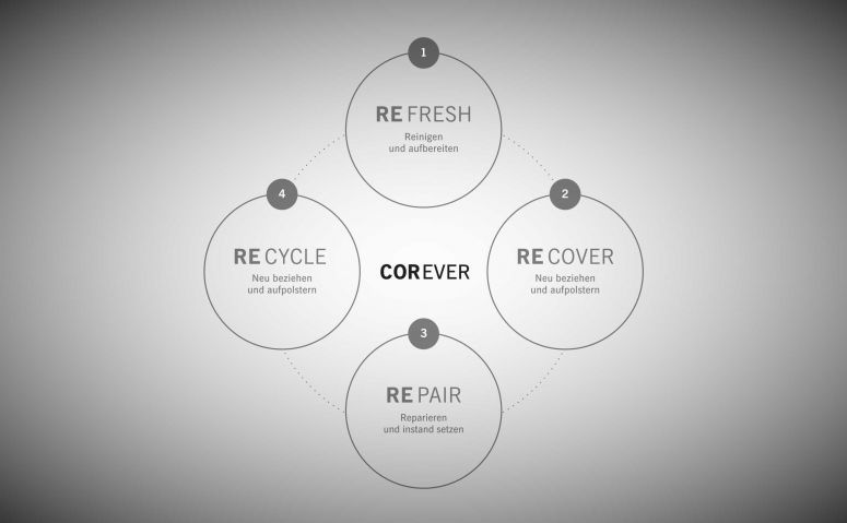 Die Wiederaufarbeitung von Möbeln ist im Trend. Ganz einfach umzusetzen ist sie nicht. Der Premium-Polstermöbelbauer Cor wagt sich dennoch daran und führt ein neues Rücknahmesystem mit dem Namen Corever ein. Mit Hilfe von Corever sollen Möbel entweder aufbereitet und zum Wiederverkauf angeboten werden oder die Materialien sortenrein dem Recyclingprozess zugeführt.